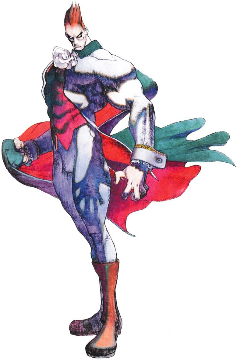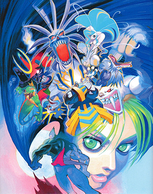 Demitri swinging his cape with the faces of the other Night Warriors present is Bengus at his absolute best in the mid-1990s. The colors, expressions and over-the-top nature of this art is prime Capcom. It gets no better than this. |
